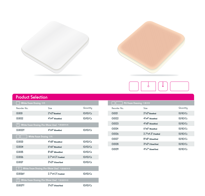 Οι επίδεσμοι αφρού είναι μαλακά προϊόντα περιποίησης τραυμάτων με επένδυση από απορροφητικό, πορώδες υλικό. Η βασική τους δύναμη έγκειται στη διαχείριση της μέτριας έως βαριάς αποστράγγισης του τραύματος, διατηρώντας παράλληλα το κρεβάτι του τραύματος κατάλληλα υγρό για επιτάχυνση της επούλωσης. Ο μαλακός αφρός παρέχει αντικραδασμική προστασία και προστασία και η αντικολλητική τους επιφάνεια επιτρέπει την ανώδυνη αφαίρεση.