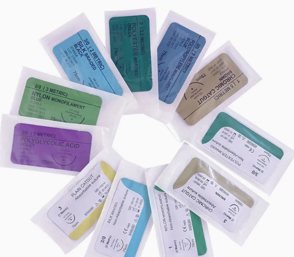 5. Μυστικά μεγέθη & υλικά που μπορούν να διατεθούν σε απορροφήσιμα (π.χ. Vicryl, Monocryl) και μη απορροφήσιμα (π.χ. νάιλον, μετάξι).